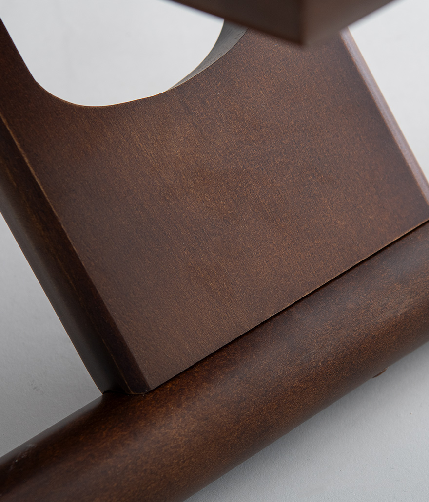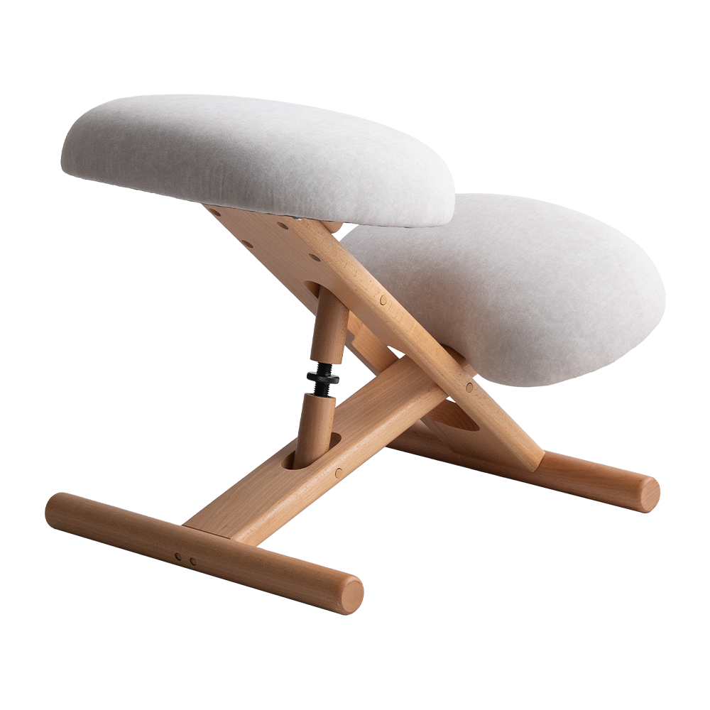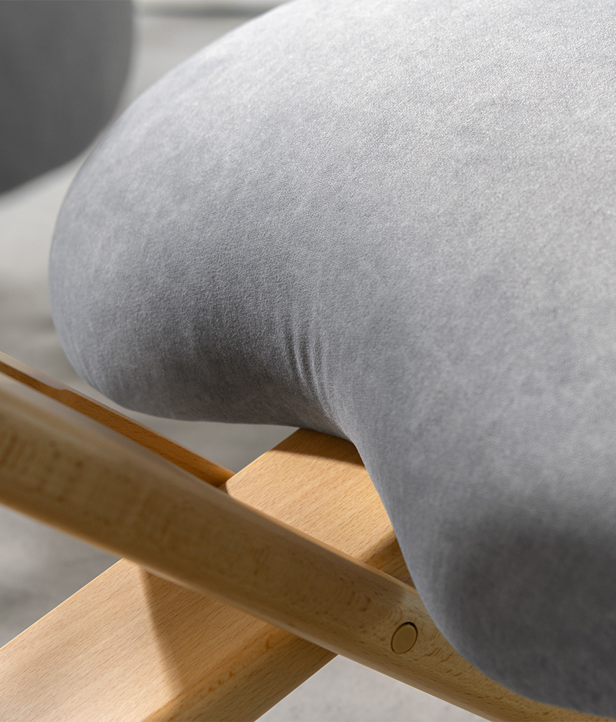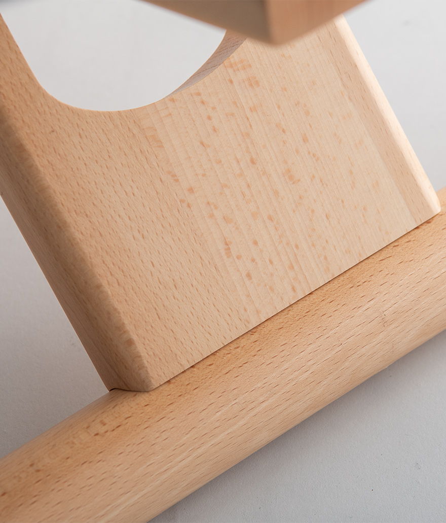 丸みを帯びたフォルムと、天然木の質感を活かしたシンプルで温かみのあるデザイン。 主張しすぎない佇まいで、リビングやダイニング、子ども部屋など、さまざまなインテリアに自然と馴染みます。 横幅45cmとコンパクトなサイズ感は学習机の下にもスッキリ収納できて、使わない時にも邪魔になりません。 アフターサービスも充実しており、パーツが摩耗してしまった場合でも、パーツ1つからご購入いただけます。